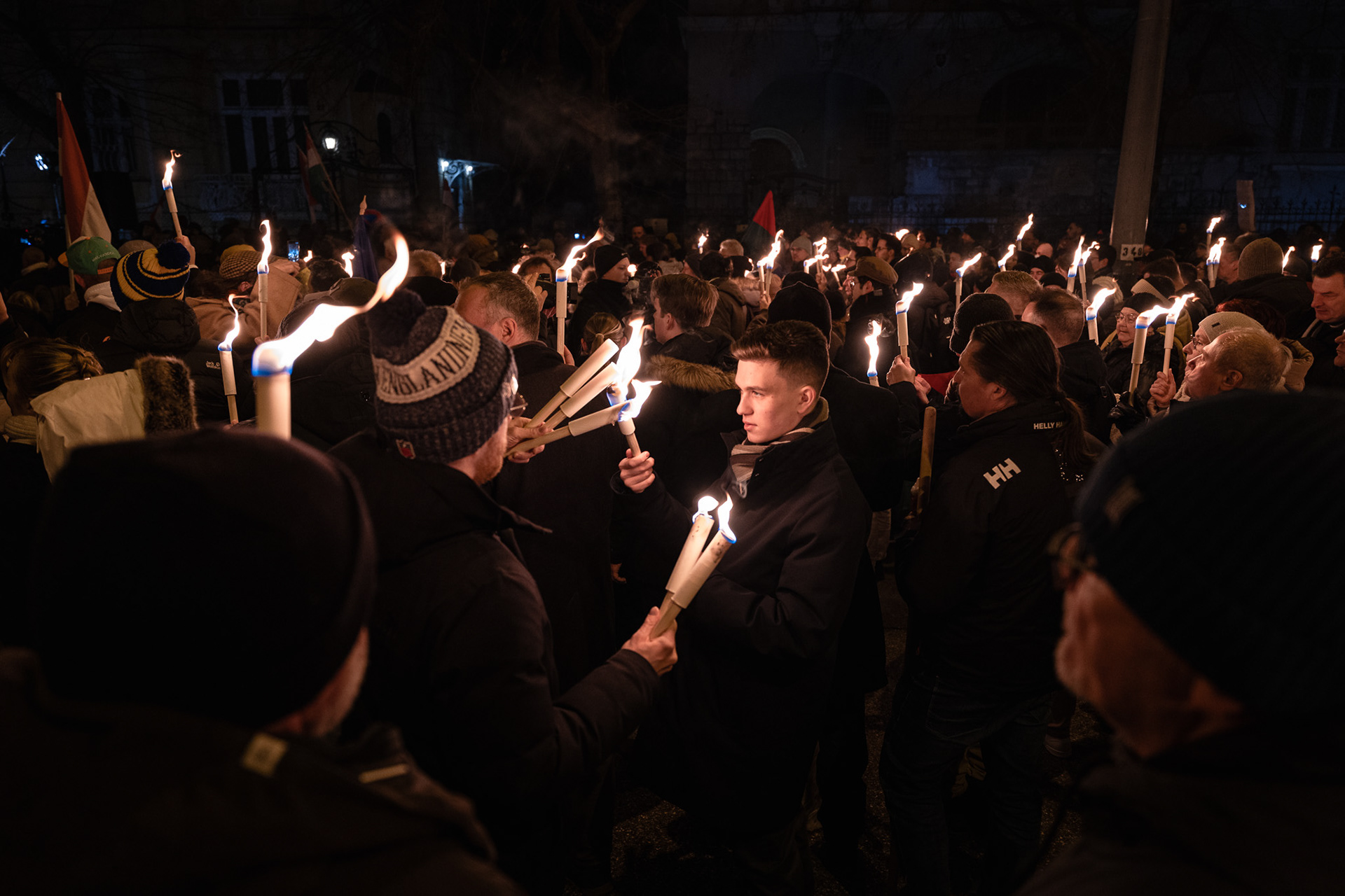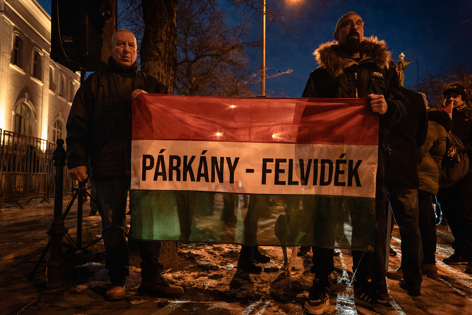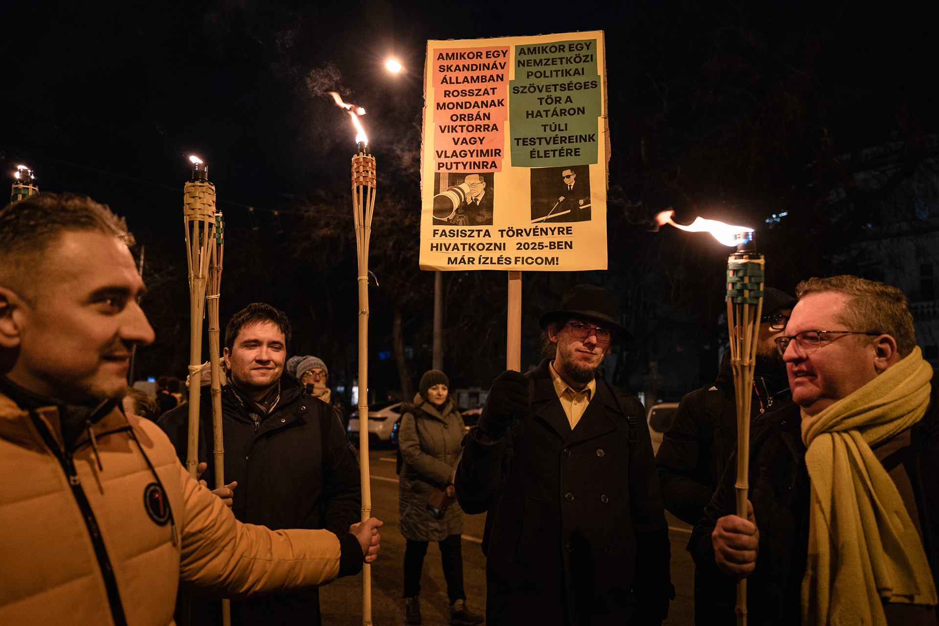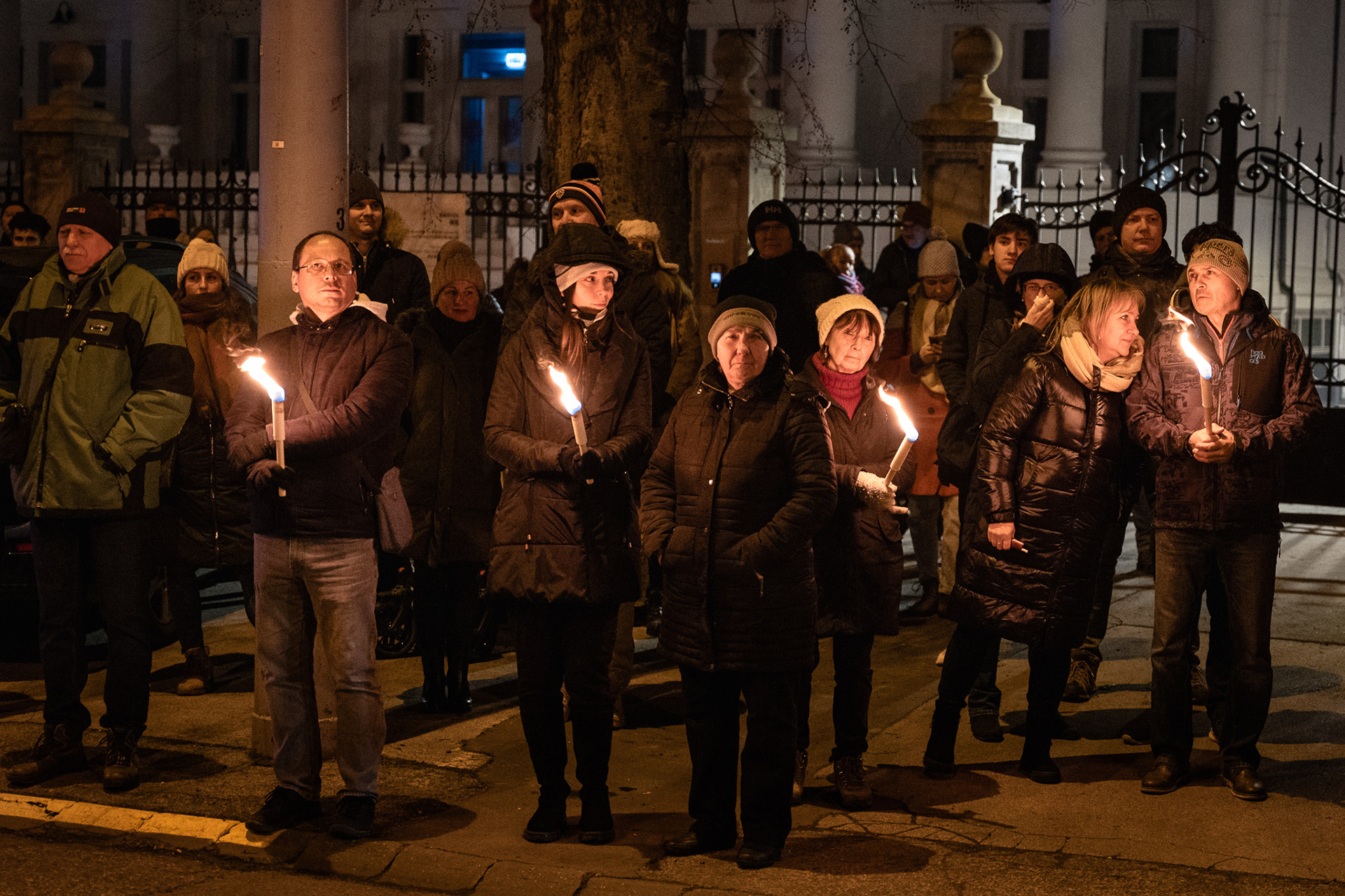 Budapest, Hungary – January 3, 2026. Several hundred people protested outside Slovakia’s embassy in Budapest on Saturday against the Beneš Decrees and a recent Slovak legislative amendment that allows prison sentences for questioning the decrees. The demonstration, organised by university students, drew a largely young crowd, with participants holding torches as they gathered on Stefánia Road.