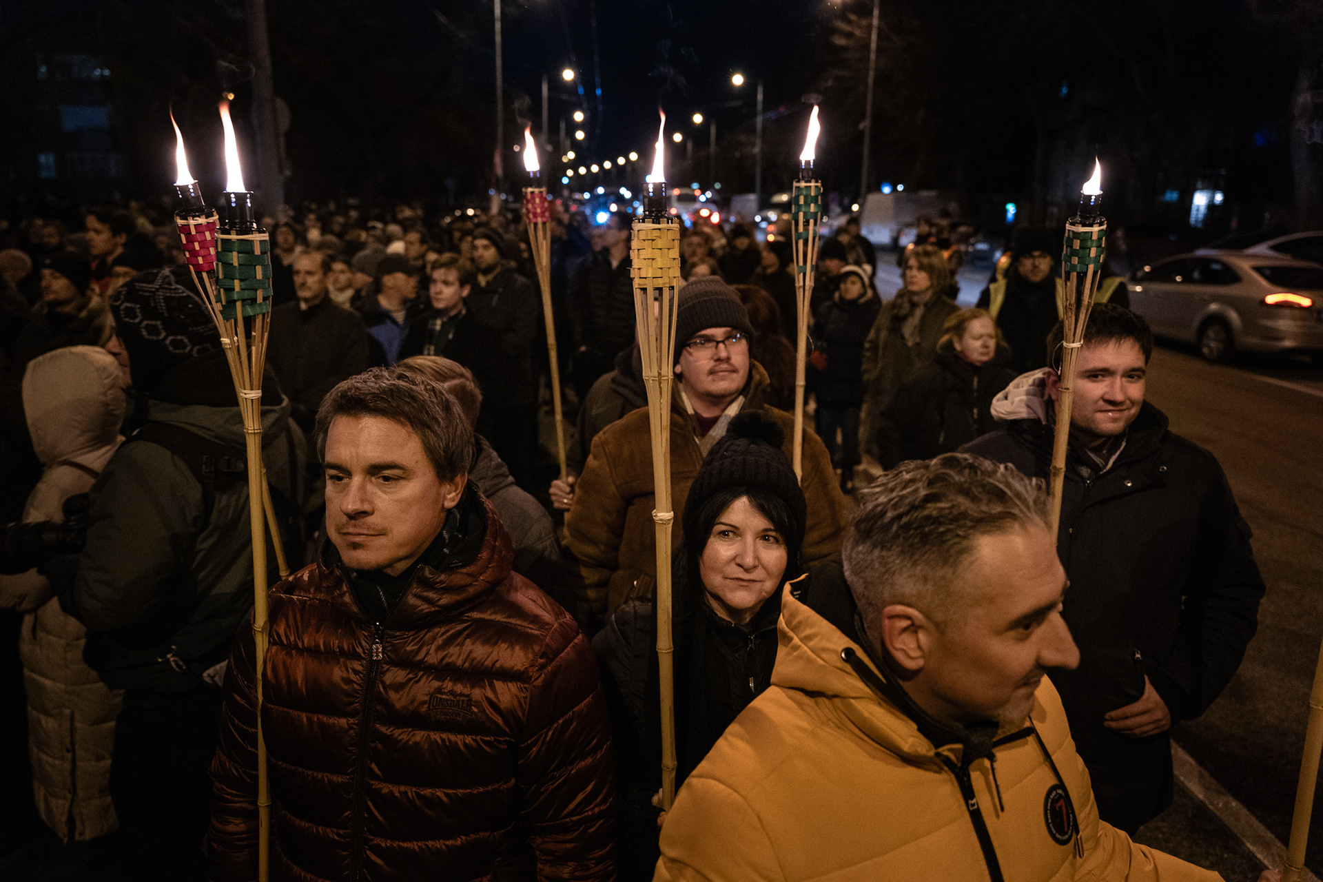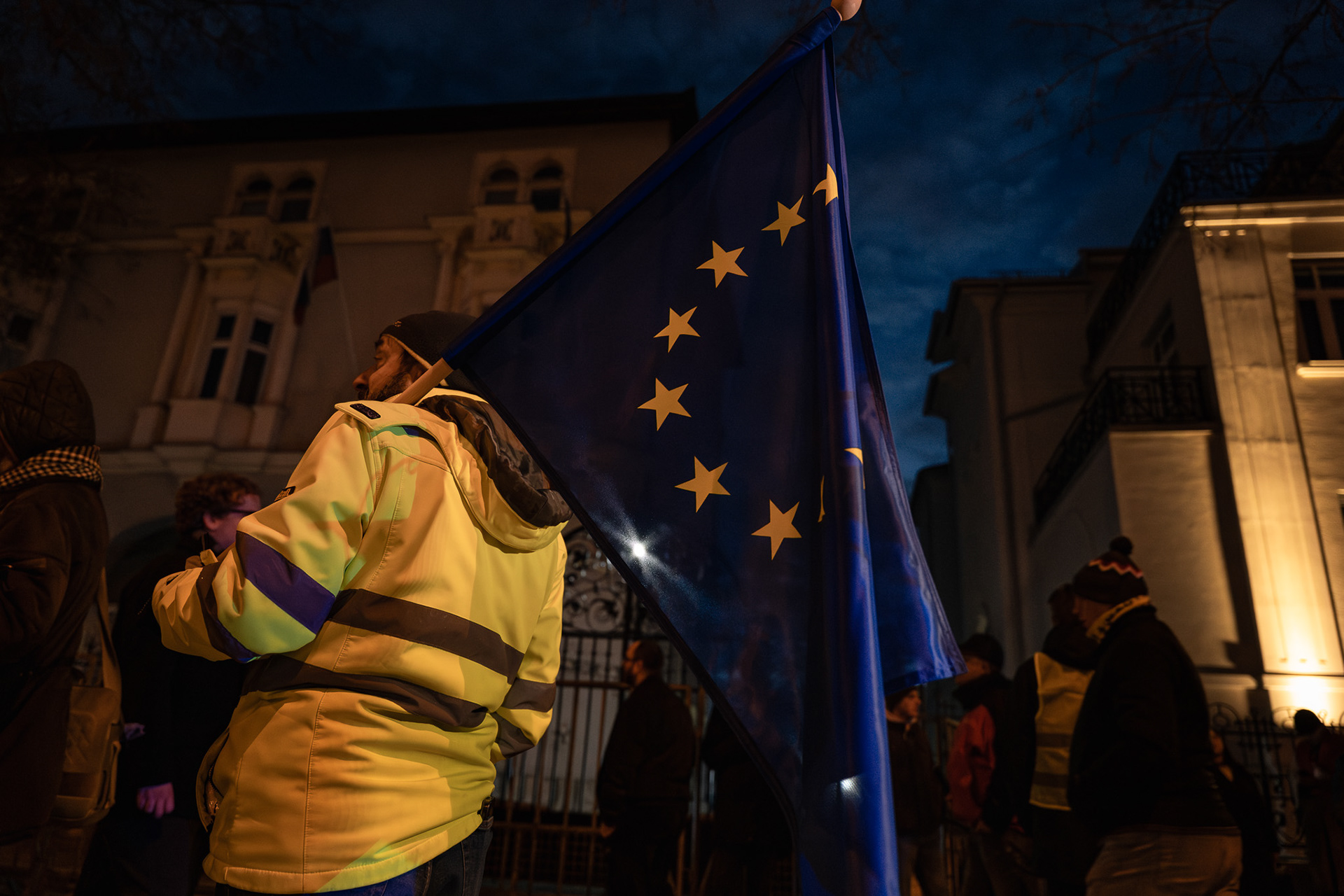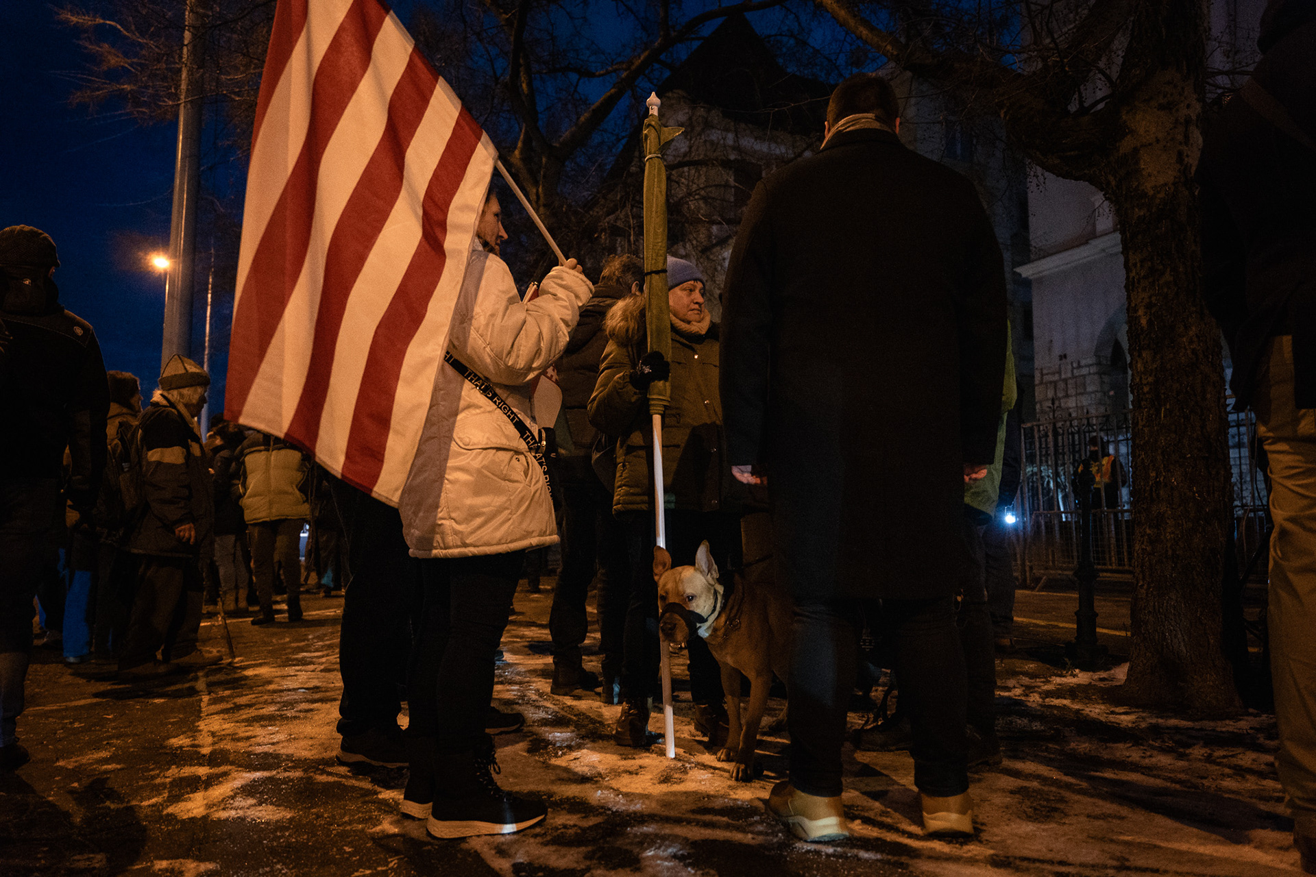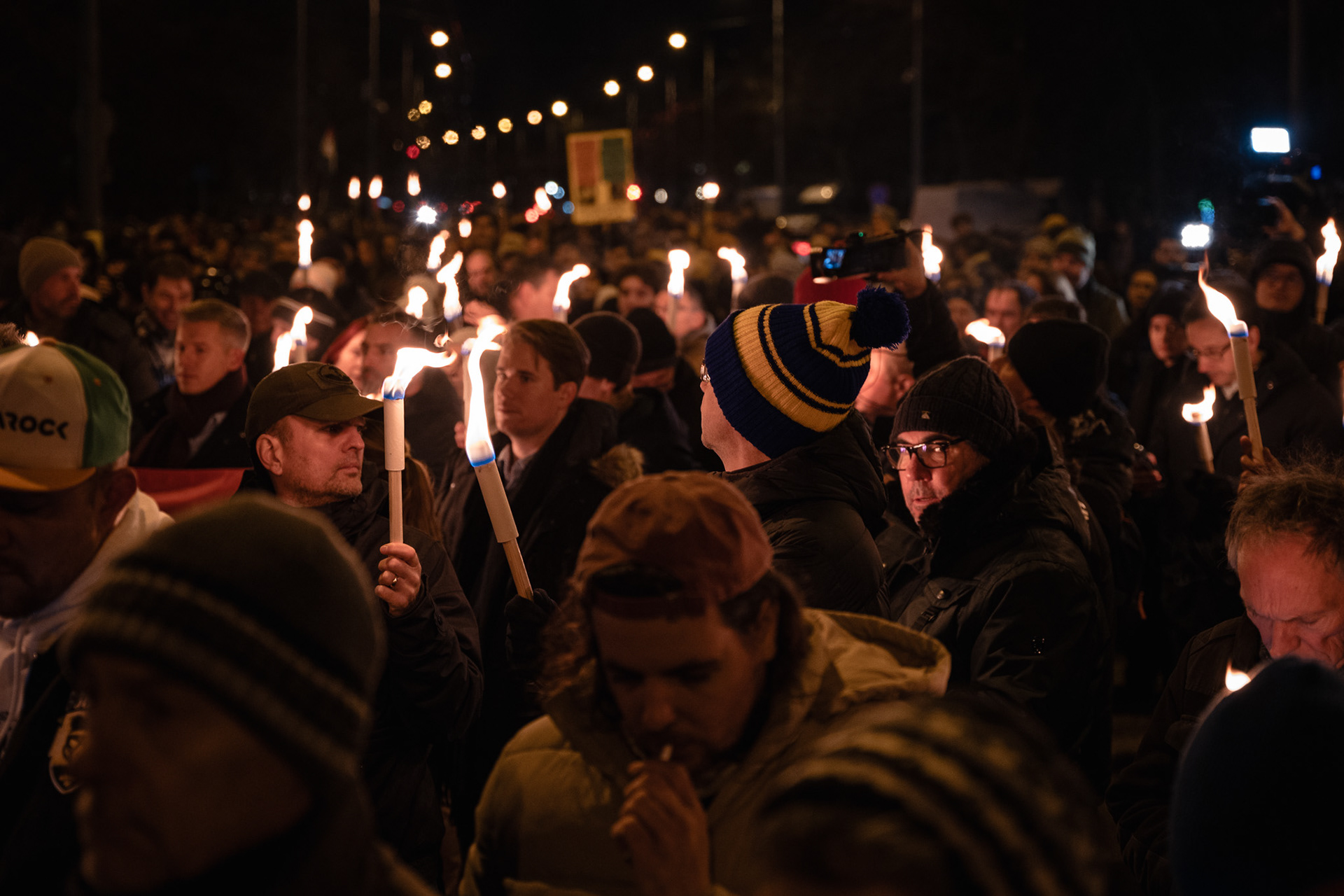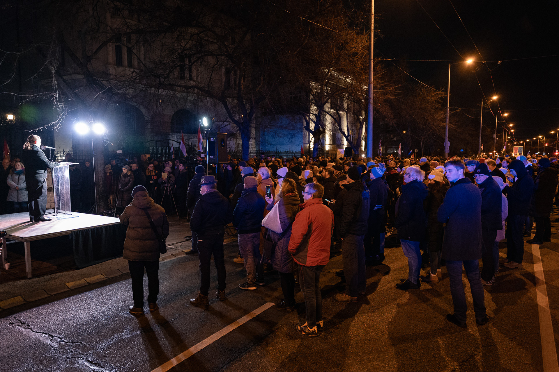 Budapest, Hungary – January 3, 2026. Several hundred people protested outside Slovakia’s embassy in Budapest on Saturday against the Beneš Decrees and a recent Slovak legislative amendment that allows prison sentences for questioning the decrees. The demonstration, organised by university students, drew a largely young crowd, with participants holding torches as they gathered on Stefánia Road.