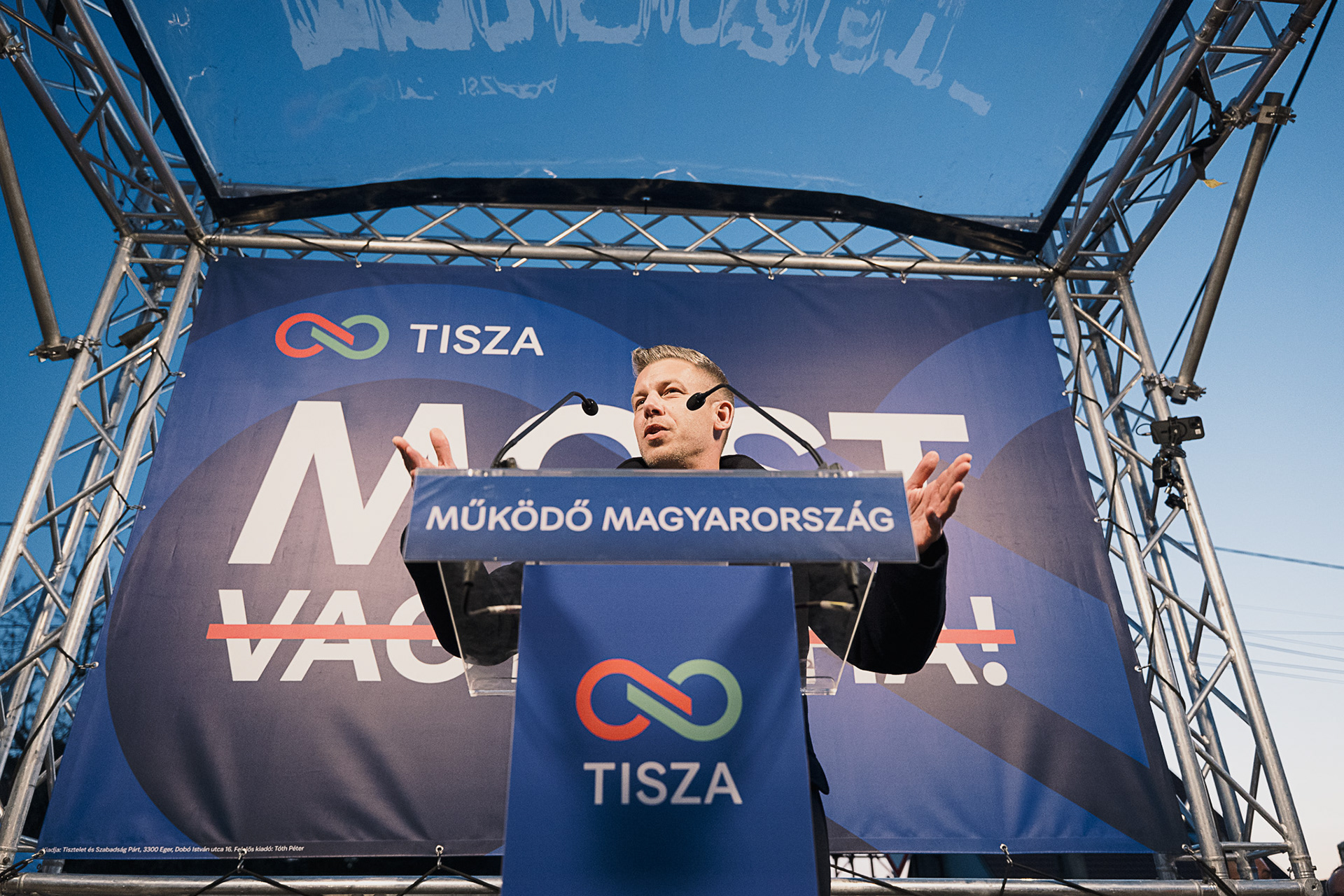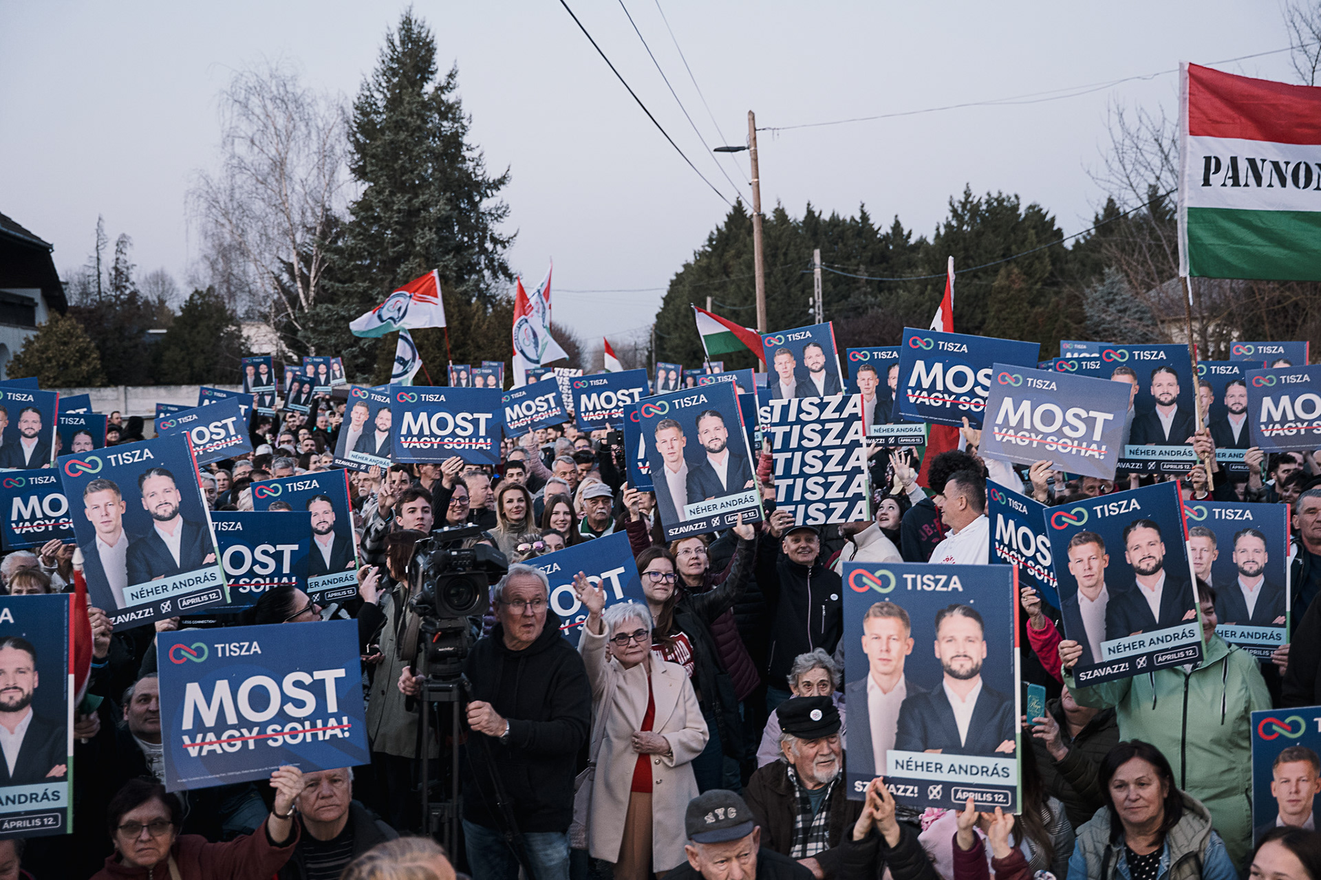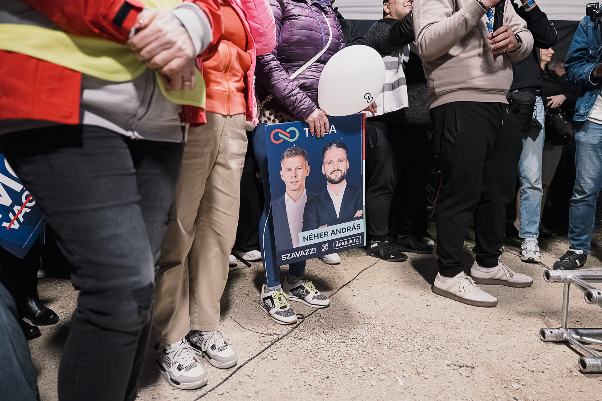 Supporters attend a campaign event of Hungary’s Tisza Party during its nationwide election tour in Győrújbarát, Hungary, on 6 March 2026. The event was part of the party’s countrywide campaign ahead of the upcoming parliamentary elections.